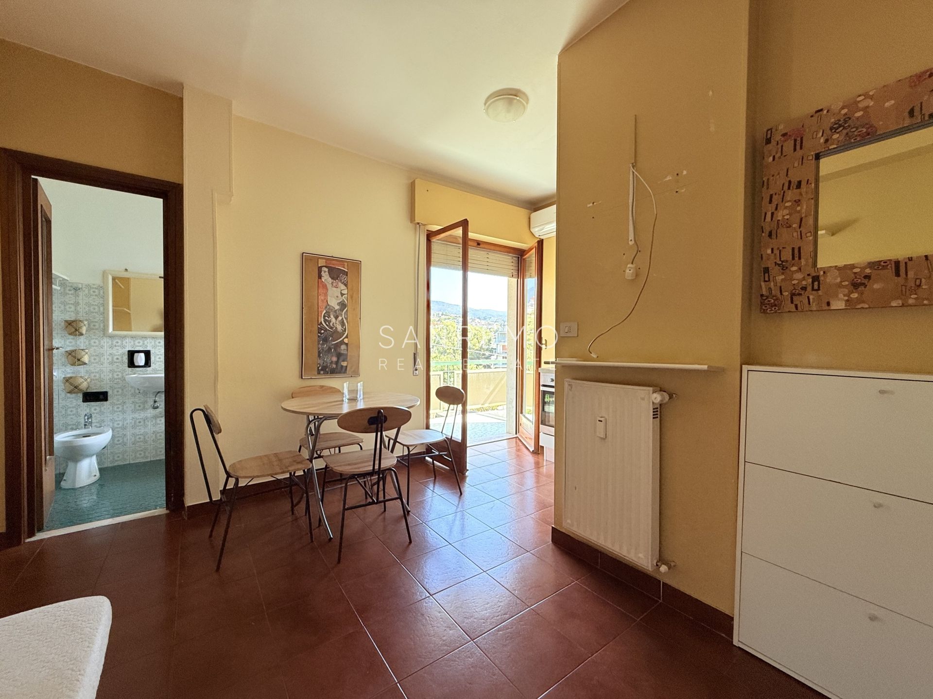 Located in a well-served and easily accessible residential area, the apartment is only a few minutes’ walk from the sea.