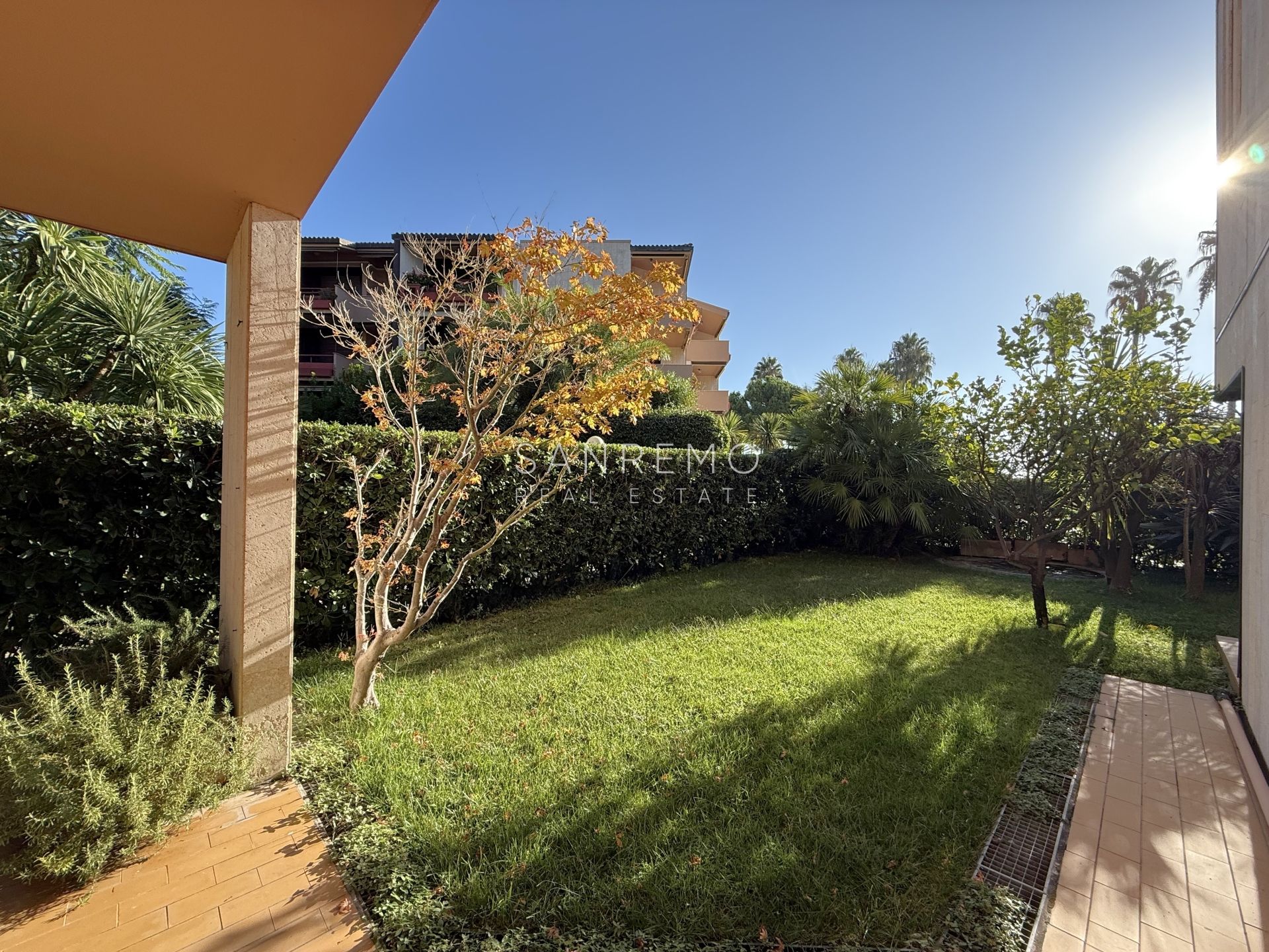 In an exclusive and prestigious seafront residential complex, equipped with a swimming pool and tennis court, we are pleased to offer for sale an elegant apartment of approximately 80 m², enhanced by a private garden.