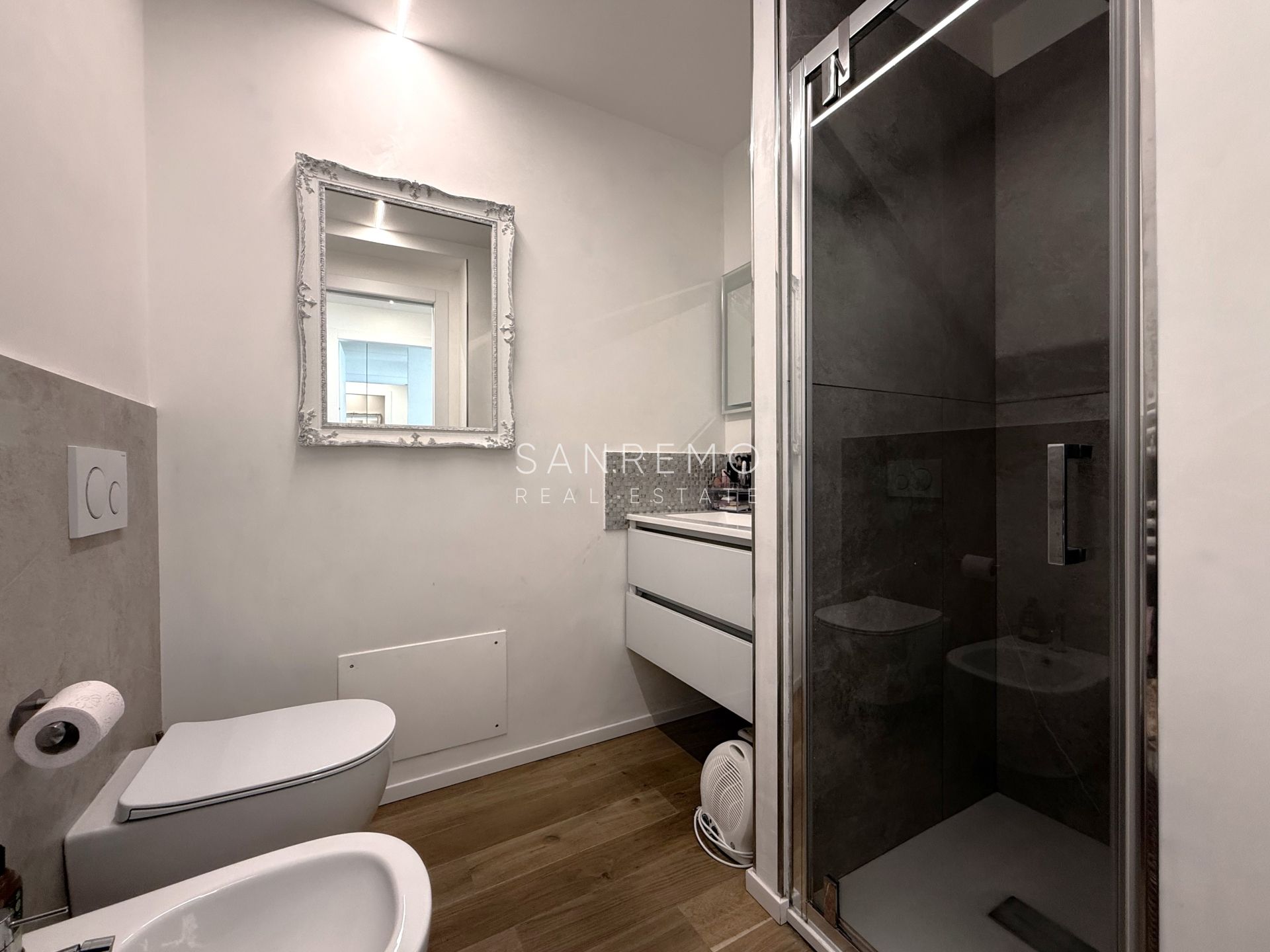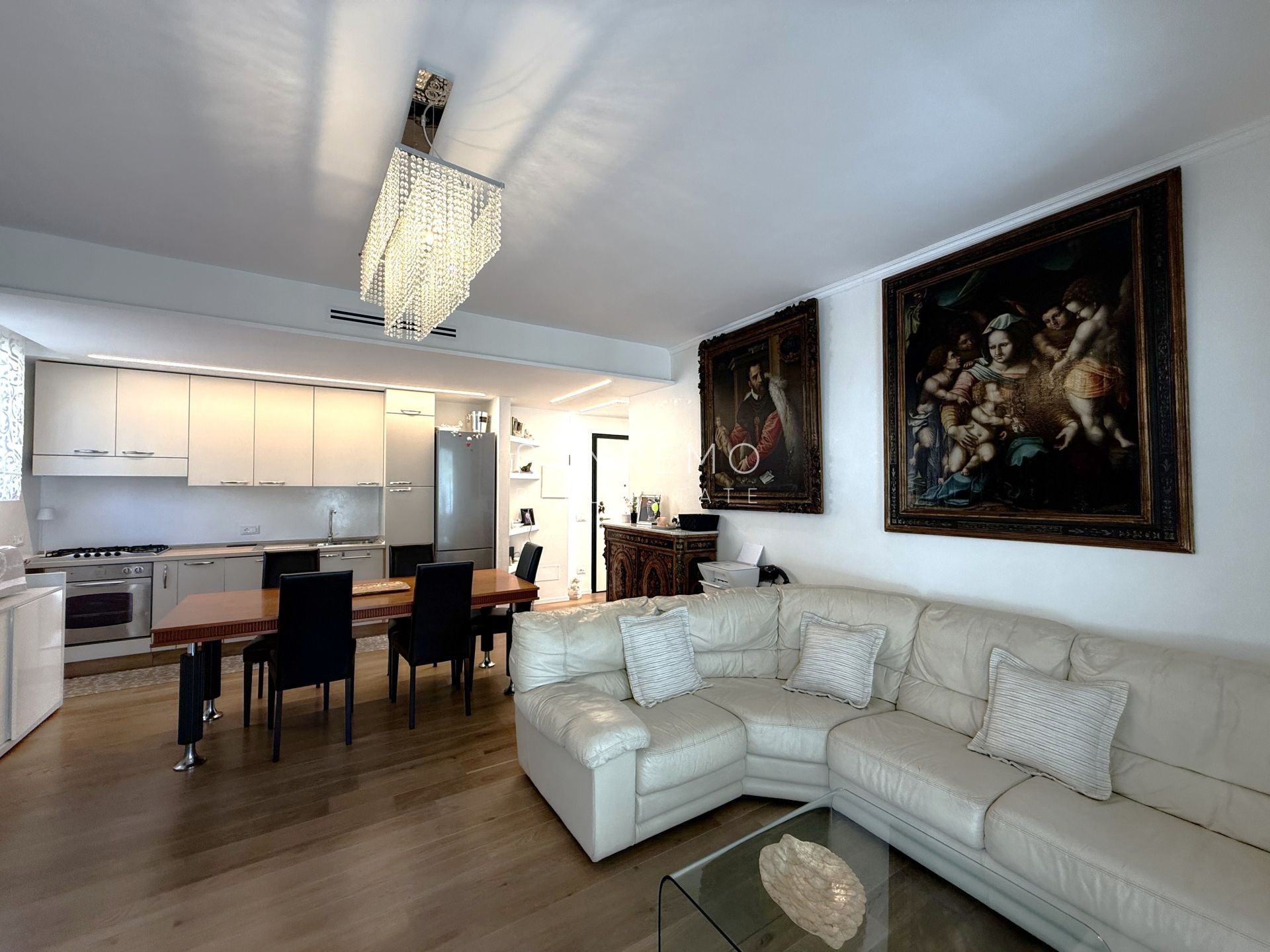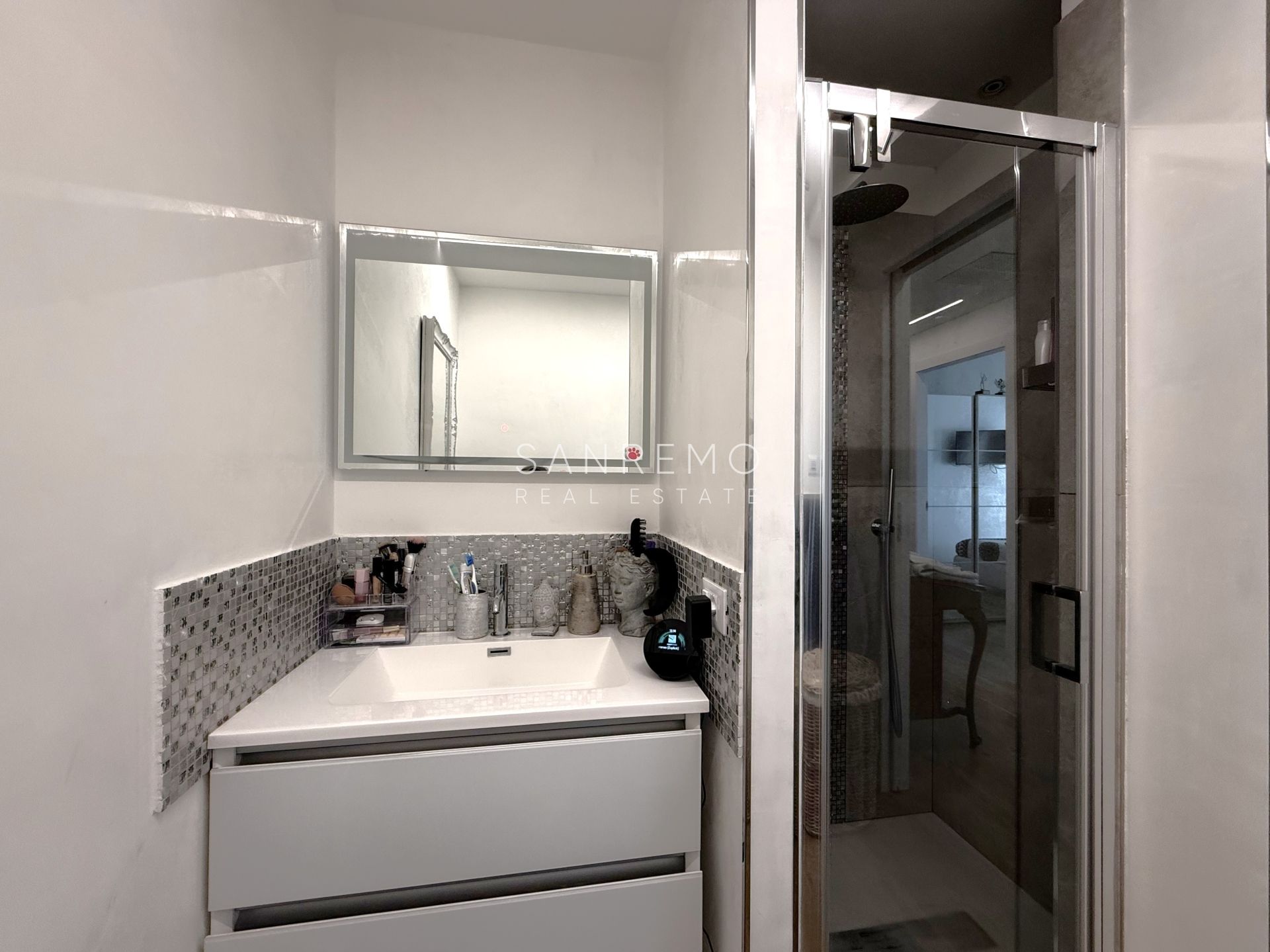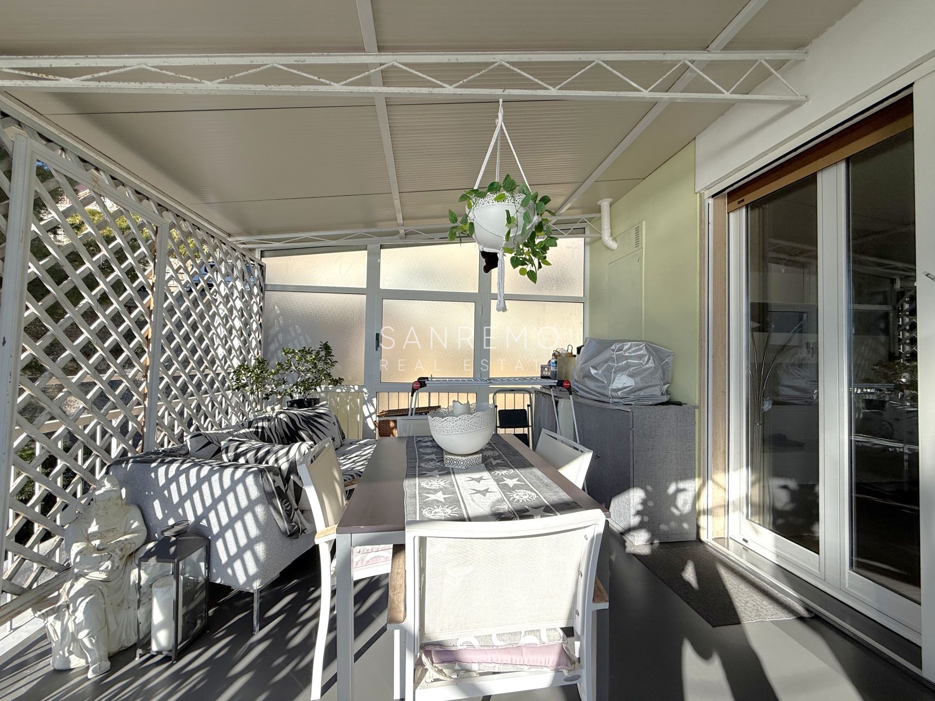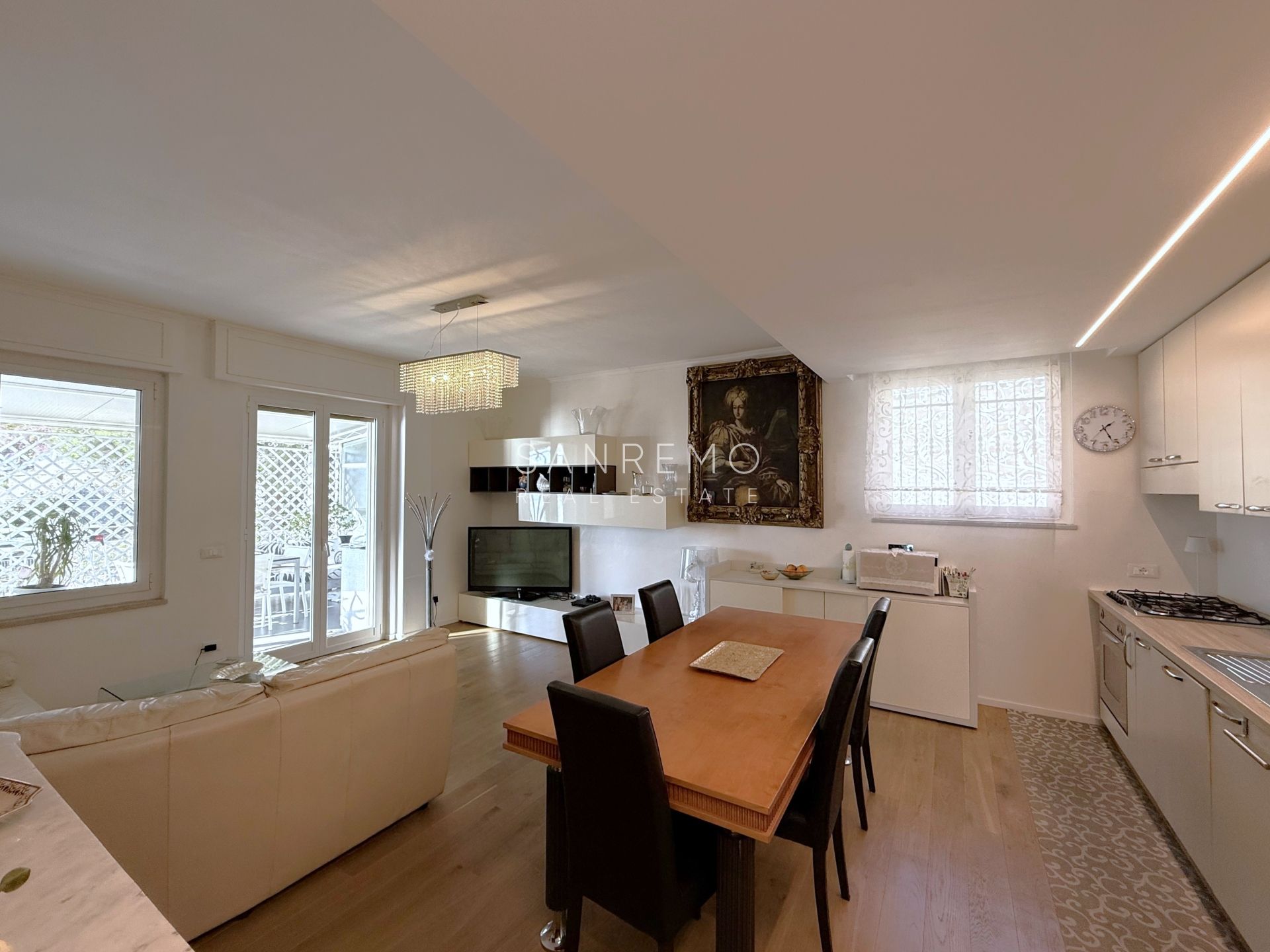 We offer for sale a splendid penthouse located in Ospedaletti, in a dominant and panoramic position, featuring double access: one directly from the coastal cycle path and the other from the main road, making it extremely convenient even for those moving on foot. The apartment, renovated approximately three years ago, is in excellent condition and comprises: a bright living room with kitchenette and direct access to a large sea-view terrace, partially enclosed, ideal for outdoor lunches and dinners sheltered from wind and direct sunlight; three bedrooms, all with access to the terrace, and two bathrooms. The sea view is open and striking, perfect for those seeking an exclusive property in one of the most desirable areas of the Riviera. The property also offers the possibility of purchasing separately a large garage, rare and highly sought-after in the area. An ideal solution as a primary residence, prestigious home or investment. The apartment features independent heating with underfloor system, air conditioning and video intercom.