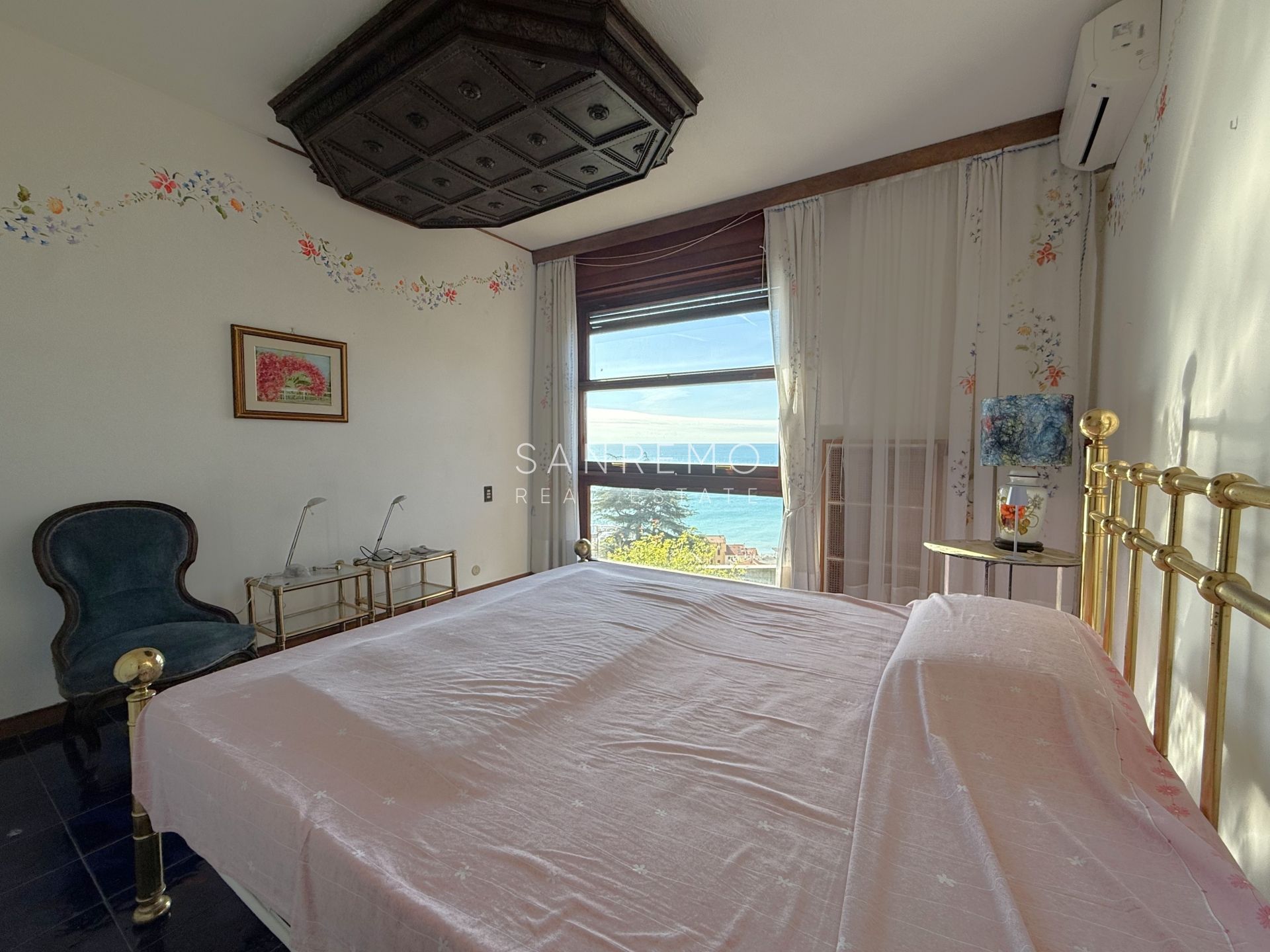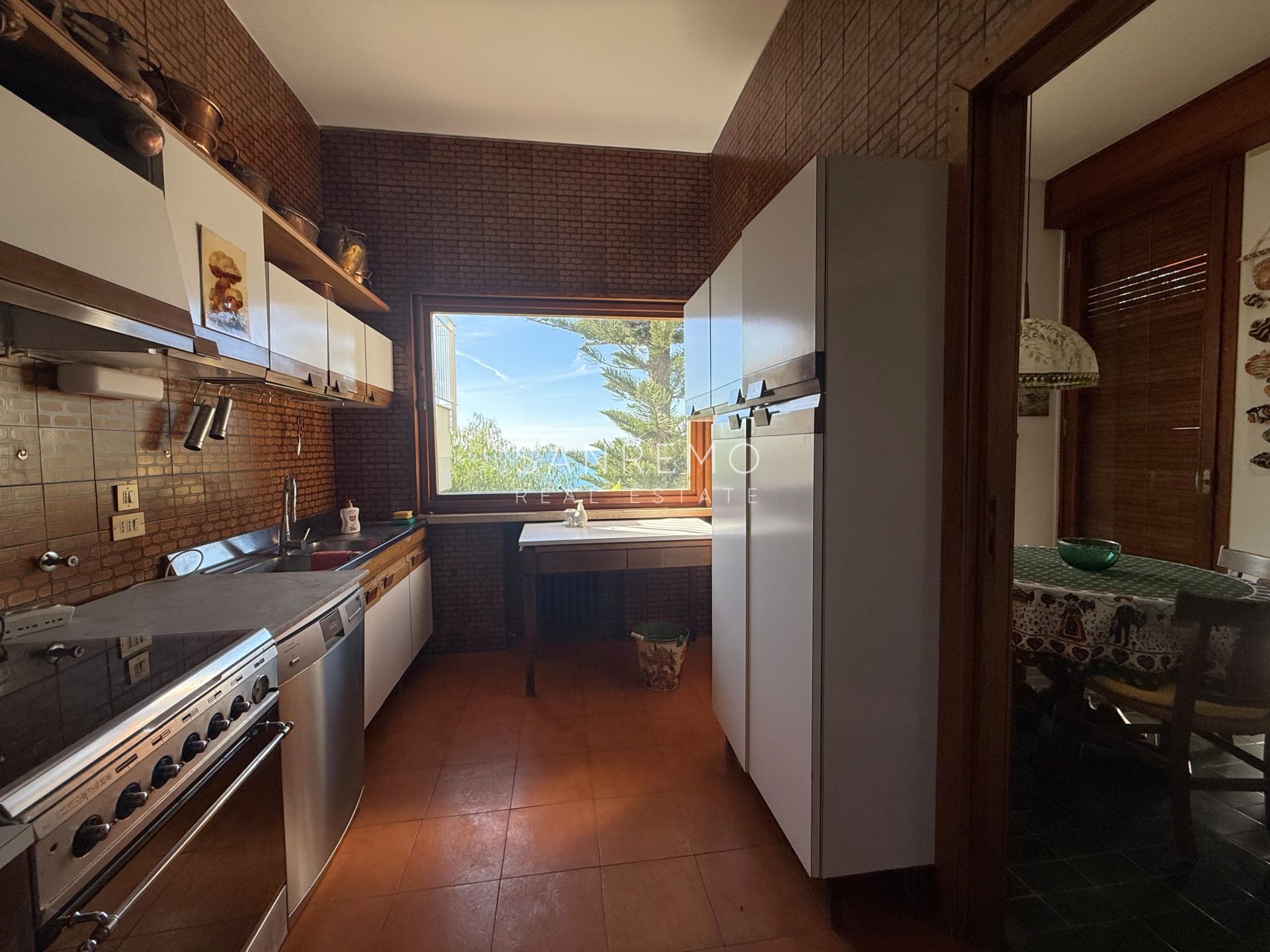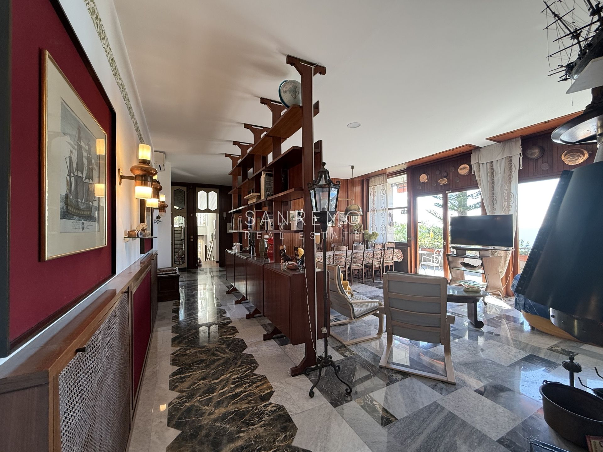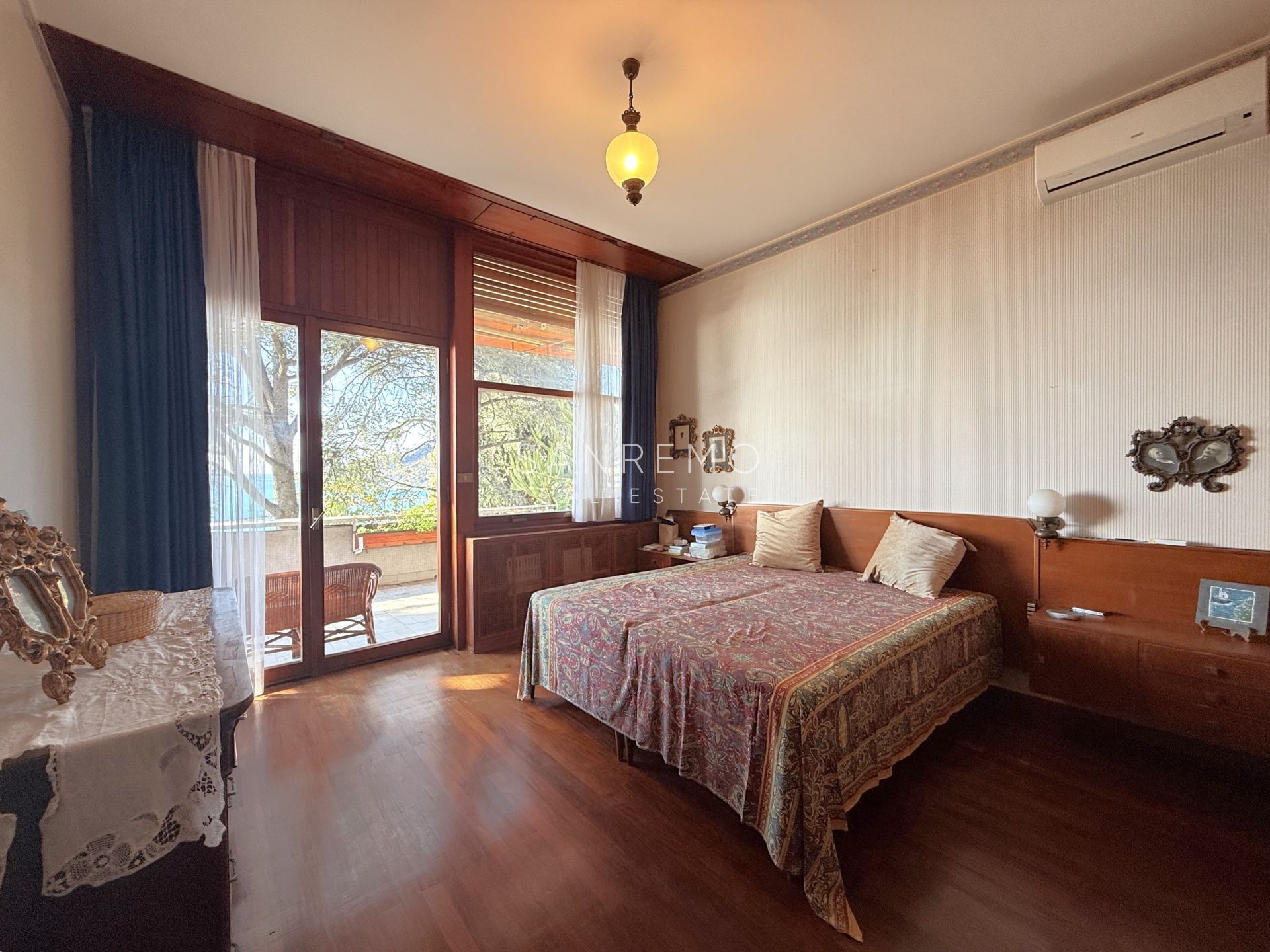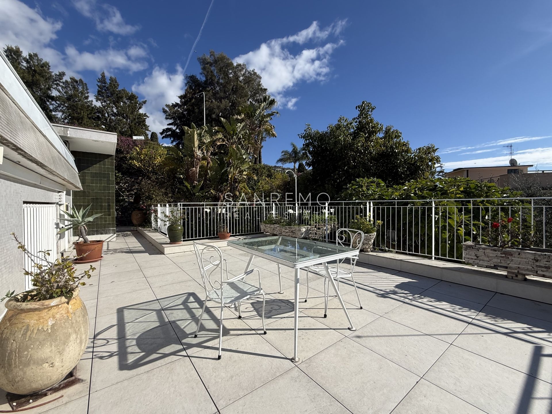 In the heart of refined Ospedaletti, renowned as the Riviera’s mildest climate location, we offer for sale an elegant villa of approximately 340 sqm, set in a context of absolute tranquility and surrounded by an exclusive private garden, enjoying a splendid open sea view. The property is arranged over three levels and welcomes with harmonious, bright, and perfectly distributed interiors. On the upper floor, a representative entrance leads to a spacious living room flooded with natural light, ideal for moments of conviviality and relaxation, alongside a large kitchen with dining area. This level is completed by a refined master bedroom with windowed bathroom, a convenient storage room, and an additional guest bathroom. The sleeping area, accessible via an internal staircase, is designed to ensure maximum privacy and comfort: here you will find two cozy bedrooms and two bathrooms, perfect for hosting family and guests in an intimate and reserved atmosphere. On the garden level, a generous ancillary area unfolds, ideal for customization according to personal needs: a charming tavern, large service rooms, laundry, and multifunctional spaces offer interesting opportunities to create wellness, leisure, or guest areas. The reserved and elevated position provides a sense of complete privacy while remaining perfectly connected: the center of Ospedaletti, its beaches, and the renowned coastal cycle path are easily reachable, allowing you to fully enjoy the authentic charm of the Riviera. A residence that combines elegance, nature, and quality of life, ideal both as a primary home and as an exclusive holiday retreat. The property is completed by a covered parking area for two cars.