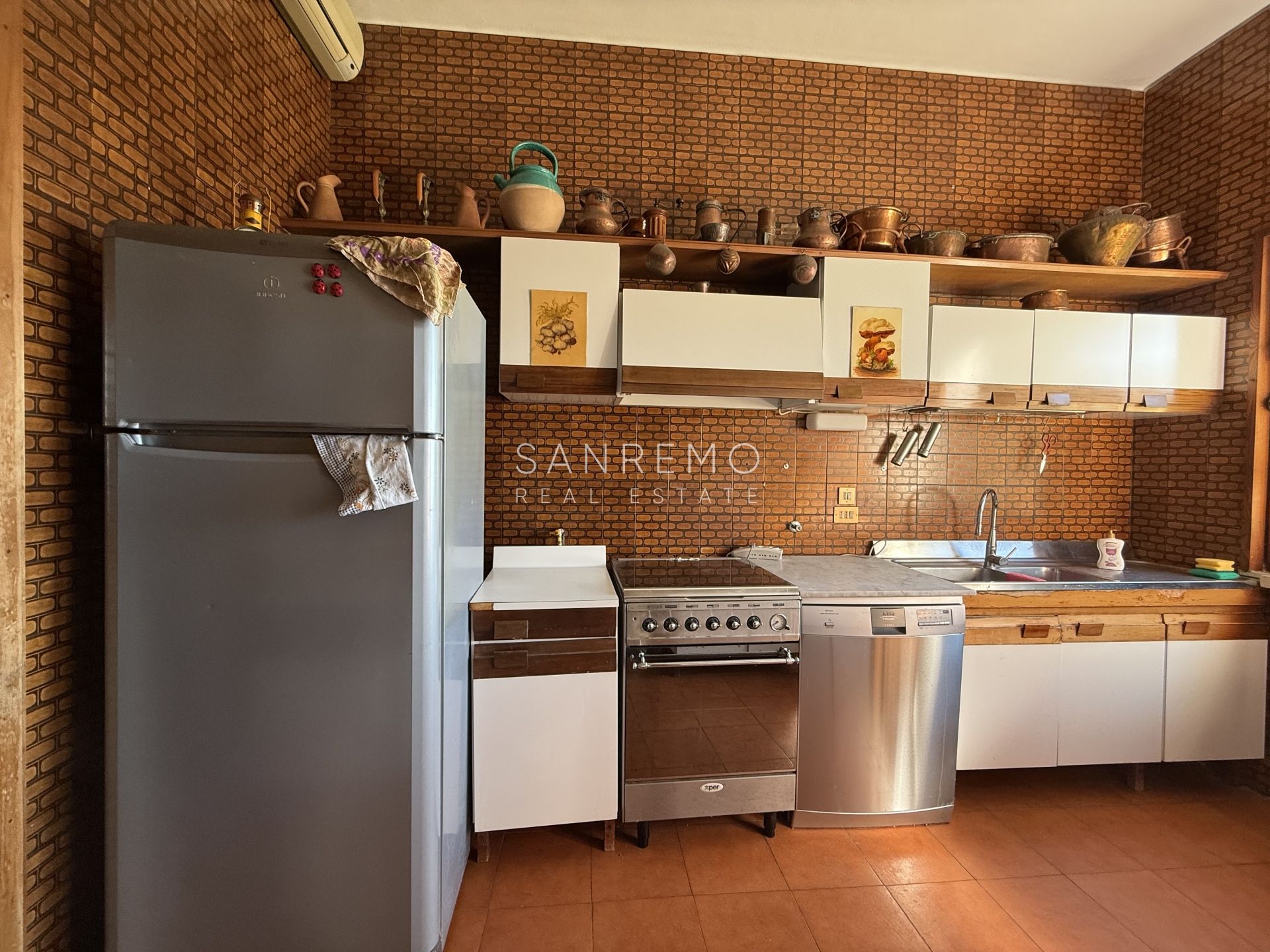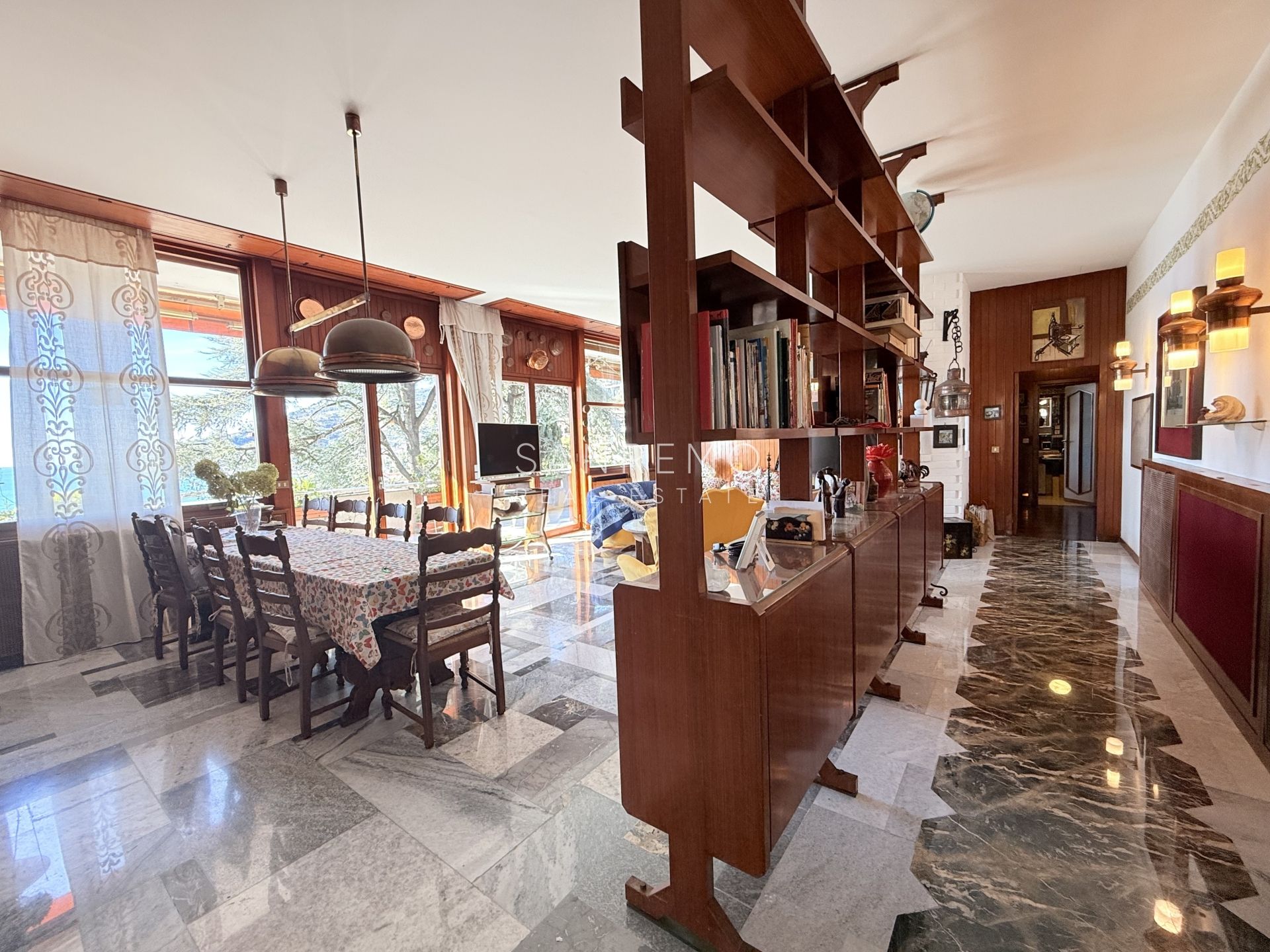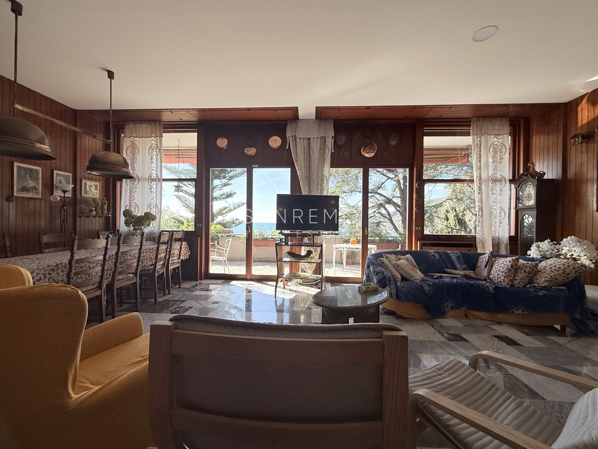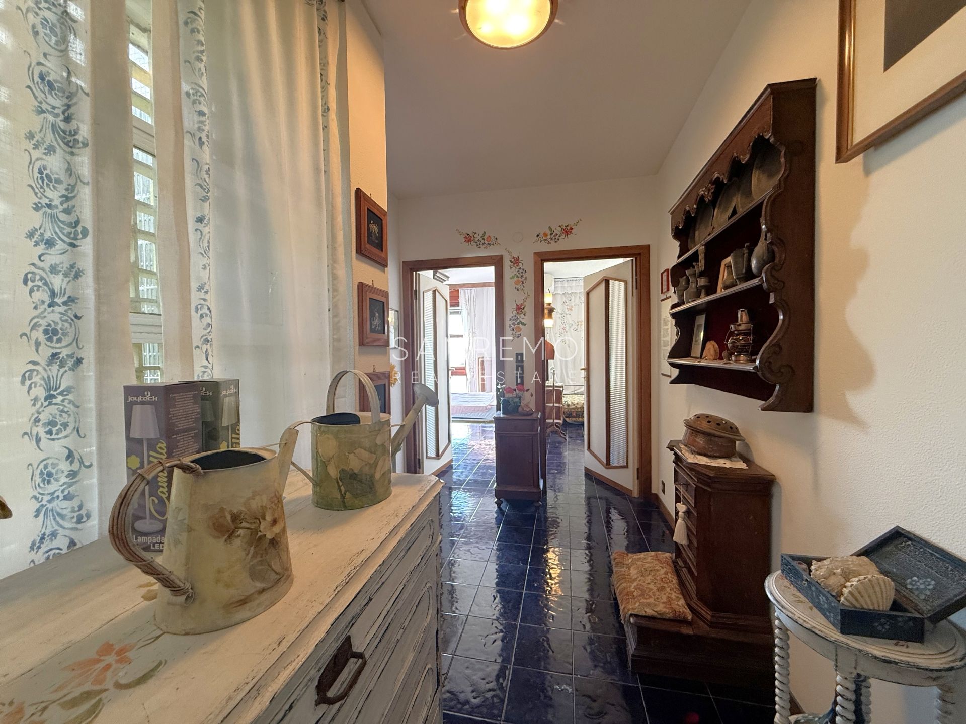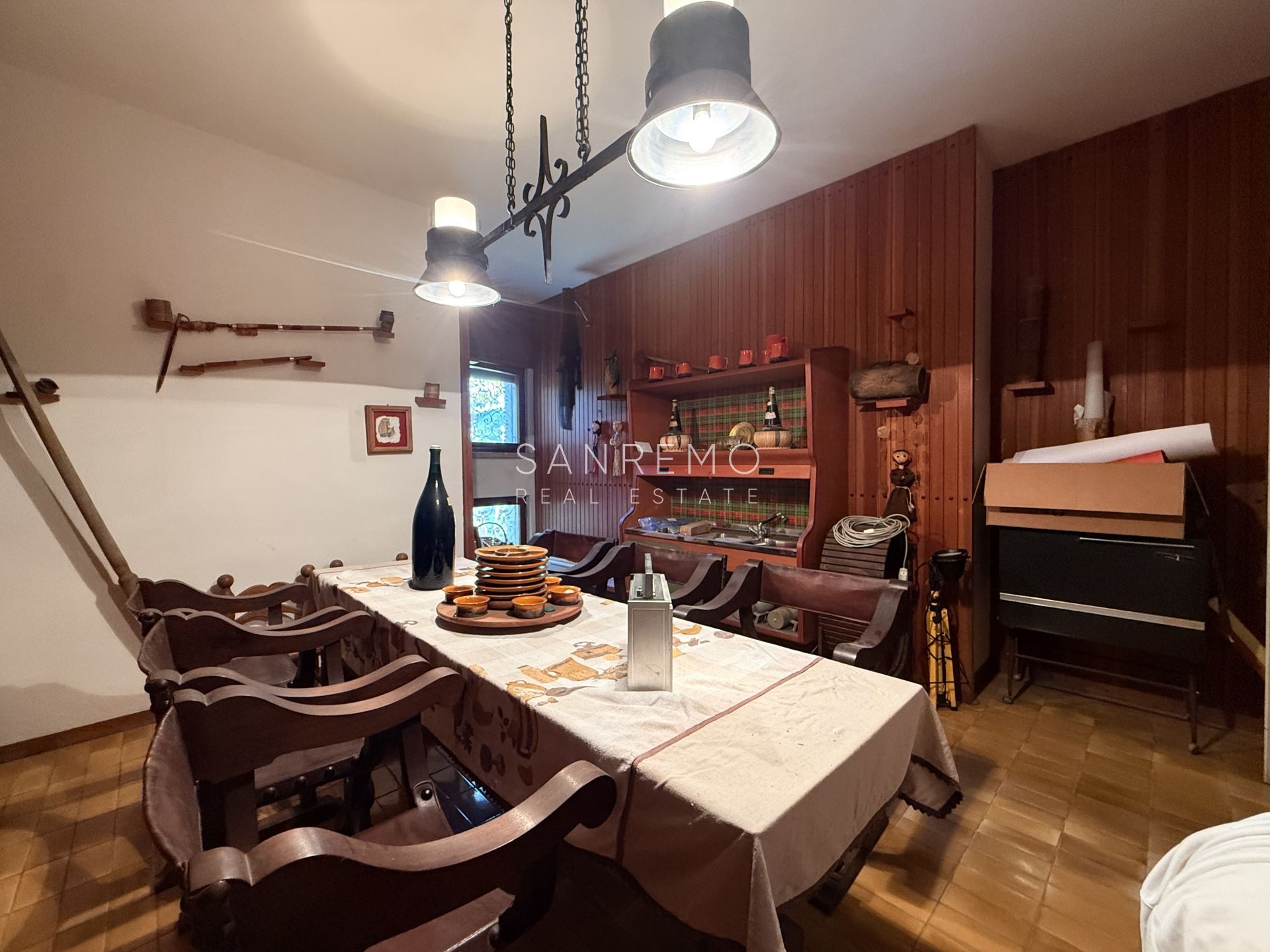 In the heart of refined Ospedaletti, renowned as the Riviera’s mildest climate location, we offer for sale an elegant villa of approximately 340 sqm, set in a context of absolute tranquility and surrounded by an exclusive private garden, enjoying a splendid open sea view. The property is arranged over three levels and welcomes with harmonious, bright, and perfectly distributed interiors. On the upper floor, a representative entrance leads to a spacious living room flooded with natural light, ideal for moments of conviviality and relaxation, alongside a large kitchen with dining area. This level is completed by a refined master bedroom with windowed bathroom, a convenient storage room, and an additional guest bathroom. The sleeping area, accessible via an internal staircase, is designed to ensure maximum privacy and comfort: here you will find two cozy bedrooms and two bathrooms, perfect for hosting family and guests in an intimate and reserved atmosphere. On the garden level, a generous ancillary area unfolds, ideal for customization according to personal needs: a charming tavern, large service rooms, laundry, and multifunctional spaces offer interesting opportunities to create wellness, leisure, or guest areas. The reserved and elevated position provides a sense of complete privacy while remaining perfectly connected: the center of Ospedaletti, its beaches, and the renowned coastal cycle path are easily reachable, allowing you to fully enjoy the authentic charm of the Riviera. A residence that combines elegance, nature, and quality of life, ideal both as a primary home and as an exclusive holiday retreat. The property is completed by a covered parking area for two cars.