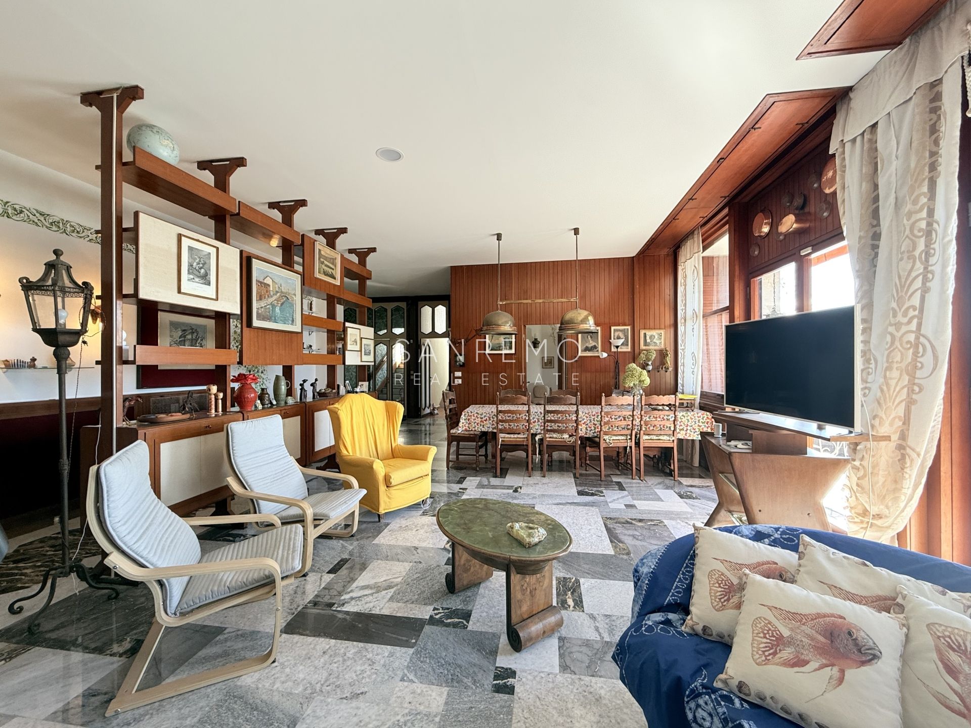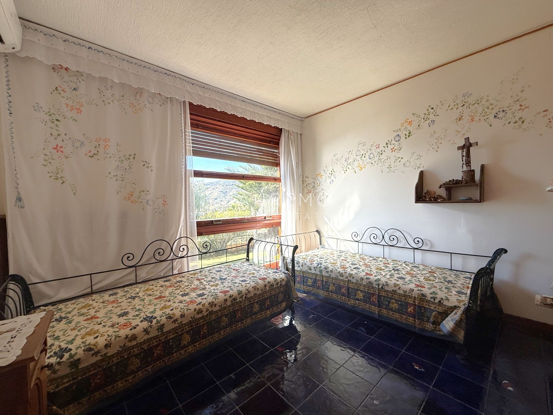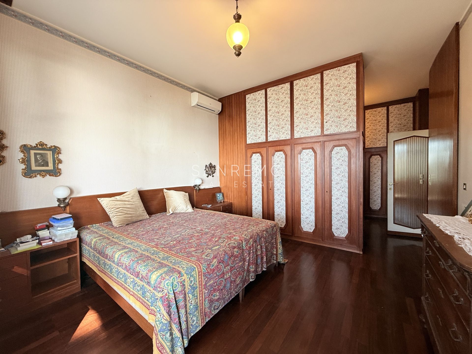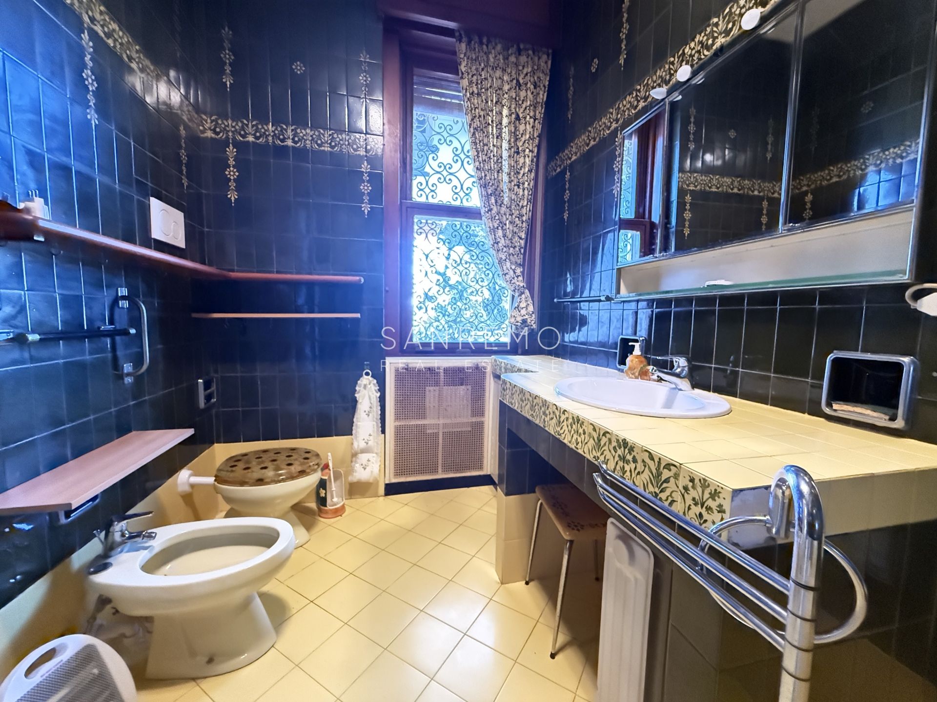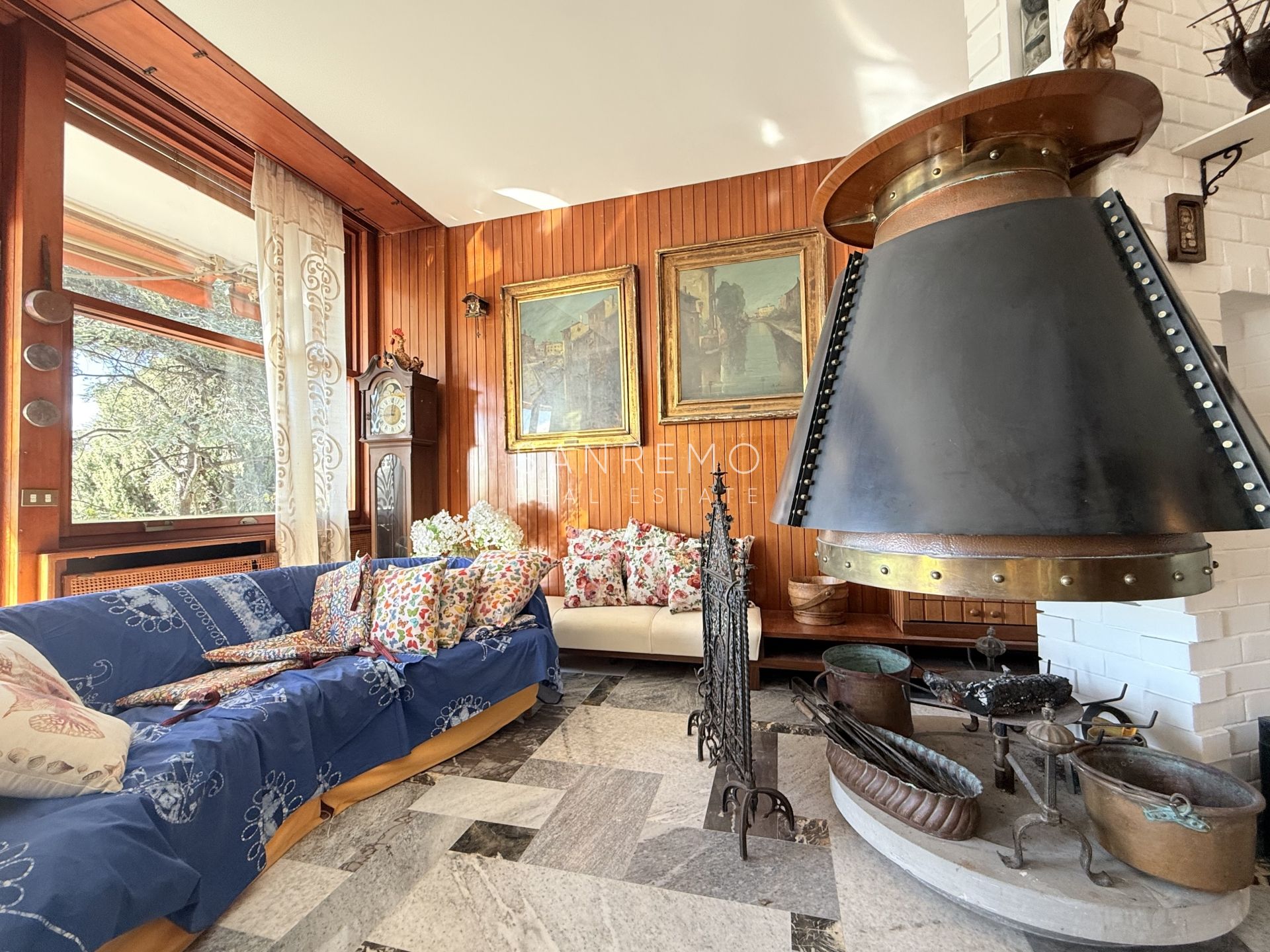 In the heart of refined Ospedaletti, renowned as the Riviera’s mildest climate location, we offer for sale an elegant villa of approximately 340 sqm, set in a context of absolute tranquility and surrounded by an exclusive private garden, enjoying a splendid open sea view. The property is arranged over three levels and welcomes with harmonious, bright, and perfectly distributed interiors. On the upper floor, a representative entrance leads to a spacious living room flooded with natural light, ideal for moments of conviviality and relaxation, alongside a large kitchen with dining area. This level is completed by a refined master bedroom with windowed bathroom, a convenient storage room, and an additional guest bathroom. The sleeping area, accessible via an internal staircase, is designed to ensure maximum privacy and comfort: here you will find two cozy bedrooms and two bathrooms, perfect for hosting family and guests in an intimate and reserved atmosphere. On the garden level, a generous ancillary area unfolds, ideal for customization according to personal needs: a charming tavern, large service rooms, laundry, and multifunctional spaces offer interesting opportunities to create wellness, leisure, or guest areas. The reserved and elevated position provides a sense of complete privacy while remaining perfectly connected: the center of Ospedaletti, its beaches, and the renowned coastal cycle path are easily reachable, allowing you to fully enjoy the authentic charm of the Riviera. A residence that combines elegance, nature, and quality of life, ideal both as a primary home and as an exclusive holiday retreat. The property is completed by a covered parking area for two cars.