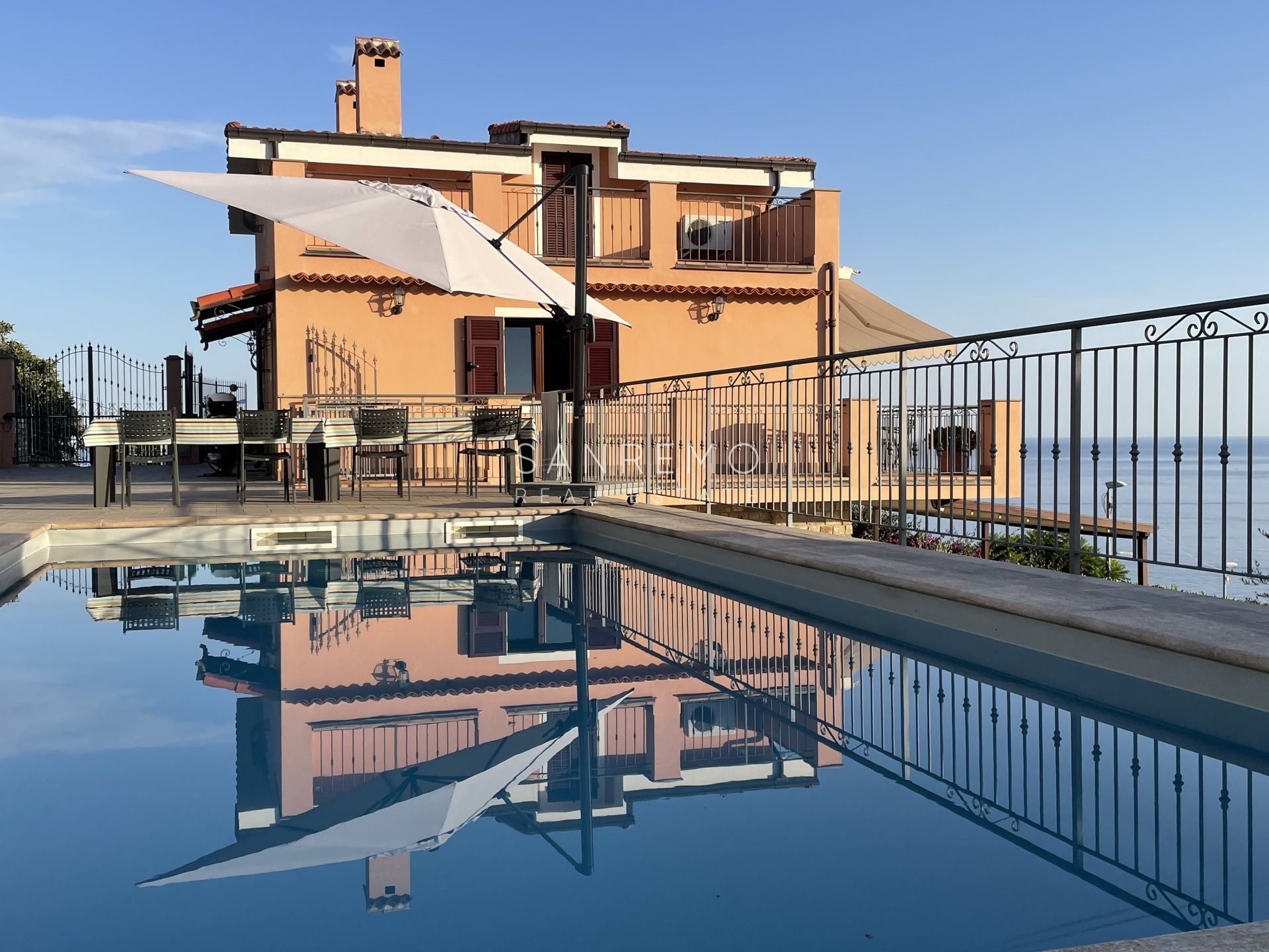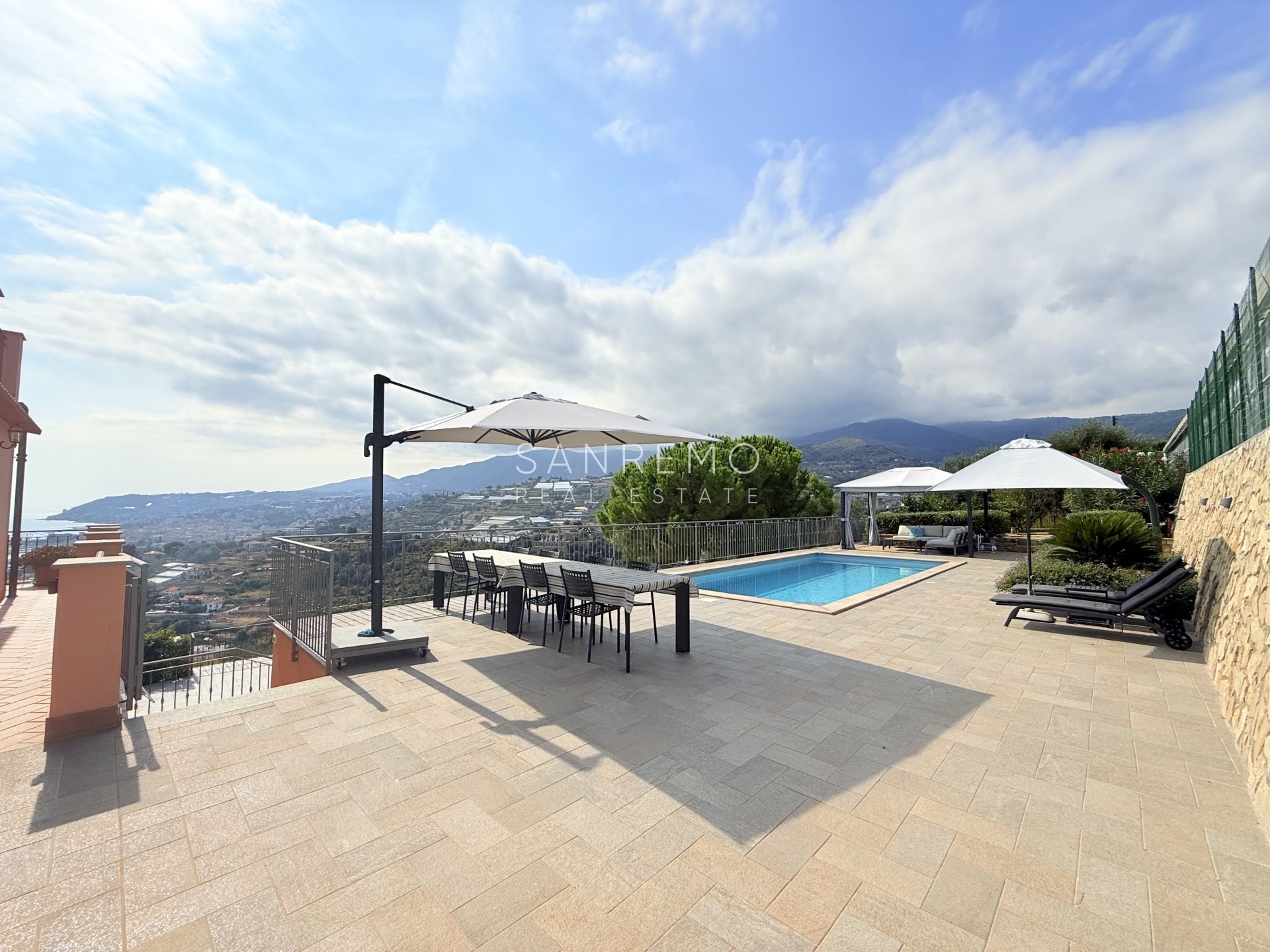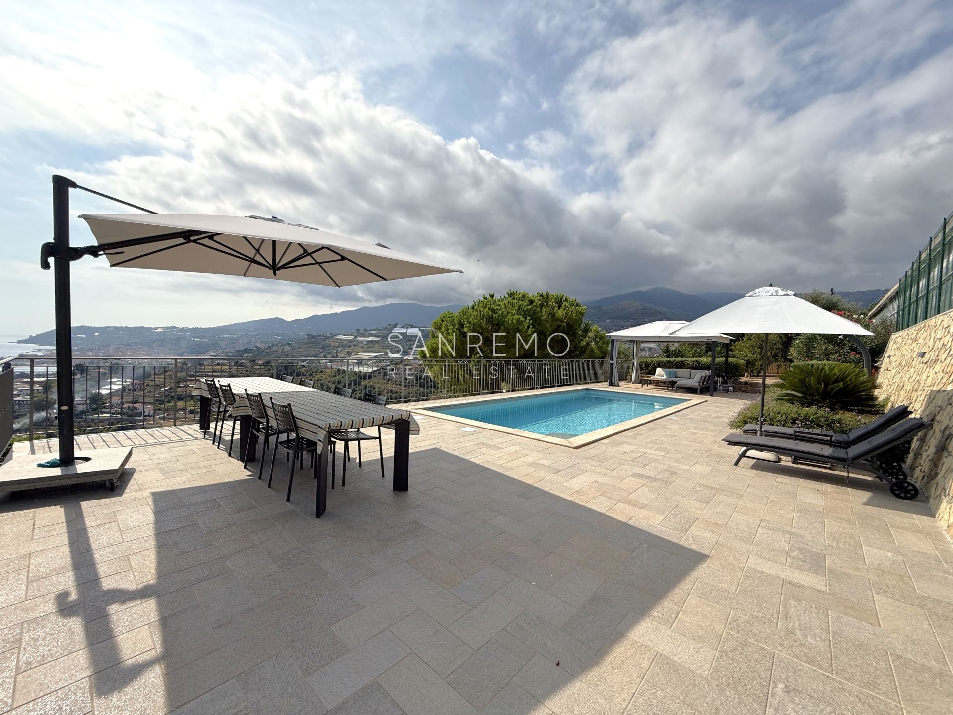 In a prime location on the first hills of Sanremo, we offer for sale a splendid detached villa with panoramic sea views, surrounded by greenery and peace, just minutes from the city center.
